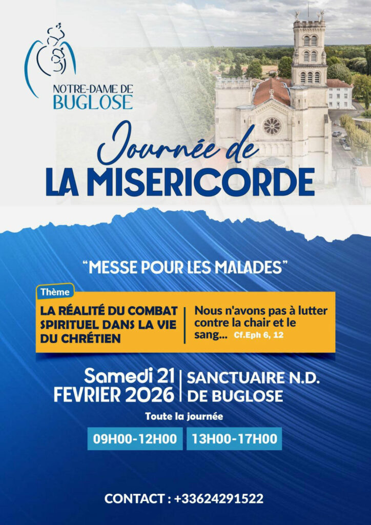 tous les Mercredis à 15H00 : chapelet à l’oratoire de la basilique tous les jeudis à 09h00 : Messe avec la prière des laudes inclus. tous les premiers vendredis du mois à 17h00 : temps d’adoration au Très Saint Sacrement. tous les samedis de 15h00 à 17h00 : confessions et écoutes spirituelles. tous les Dimanches […]